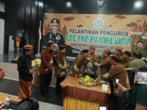 Calon Bupati Labusel nomor urut 03, Ari Wibowo, yang merupakan satu-satunya calon bupati dari suku Jawa, menghadiri pelantikan Pujakesuma Labuhanbatu Selatan