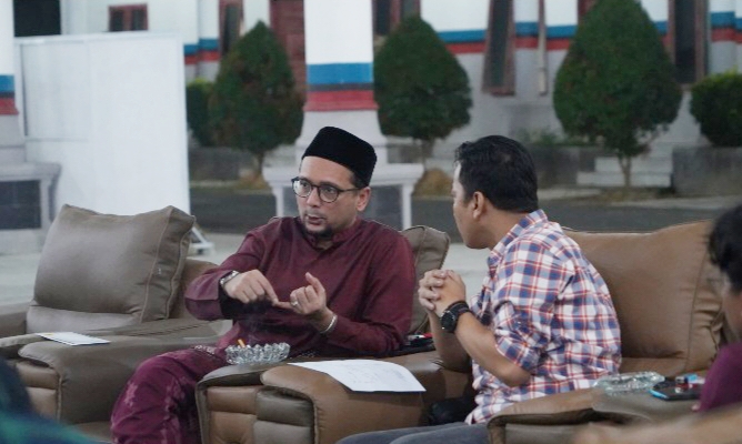 Bupati Labusel Fery Sahputra Simatupang menerima kunjungan Manajer PT PLN (Persero) Unit Layanan Kotapinang di Pendopo Rumah Dinas Bupati, Rabu malam (11/3/2026).