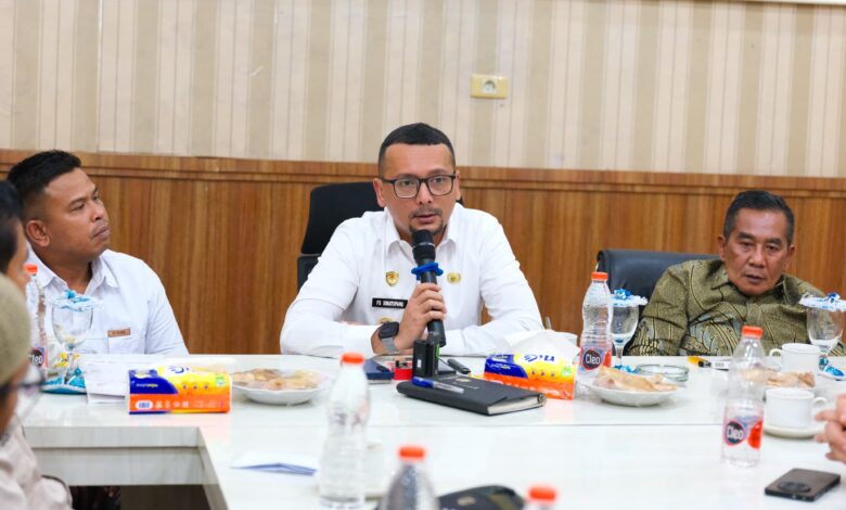 Bupati Labuhanbatu Selatan (Labusel) Fery Sahputra Simatupang didampingi Wakil Bupati Syahdian Purba Siboro menerima audiensi Komisi Pemilihan Umum (KPU) Labusel di Aula Lantai III Kantor Bupati Labusel, Kamis (8/1/2026).