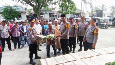 Kapolres Labuhanbatu Selatan Bagikan Sembako kepada Penarik Betor