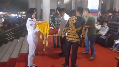 Pasukan Pengibar Bendera (Paskibra) Tetap Semangat menurunkan Bendera LPTQ & LASQI THN 2024 meski di guyur hujan. Labusel, journalistCyber.com Pasukan…