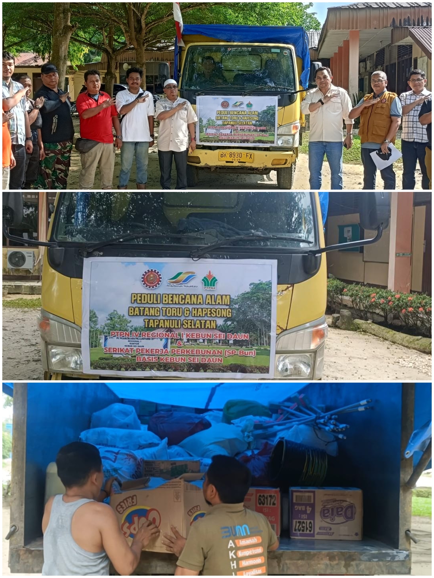 Manajemen dan karyawan Kebun Sei Daun PTPN IV Regional I bersama Serikat Pekerja Perkebunan (SP-Bun) Basis Kebun Sei Daun menunjukkan kepedulian mendalam terhadap korban bencana alam yang melanda wilayah Batang Toru dan Hapesong, Kabupaten Tapanuli Selatan.