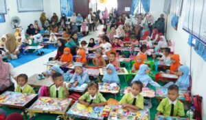 Ketua Tim Penggerak PKK Kabupaten Labuhanbatu Selatan, Hj. Darni Hatna Saima Edimin, menghadiri Lomba Mewarnai Siswa-siswi TK se-Desa Asam Jawa.